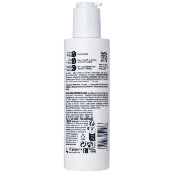 Le fluide rénovateur BC Bonacure R-Two est un masque capillaire sans rinçage qui agit instantanément pour restaurer et renforcer les cheveux. Sa formule spécialement conçue convient aux cheveux extrêmement abîmés par des traitements chimiques ou physiques excessifs.