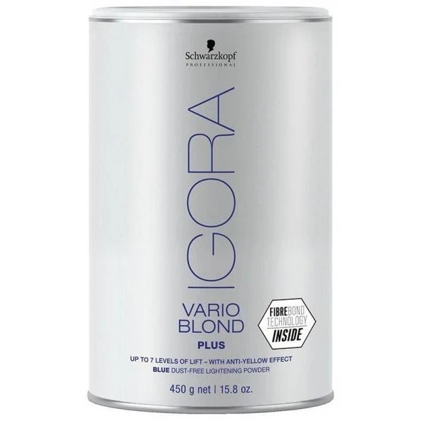 Igora Vario Blond Plus – Poudre compacte dĂ©colorante bleue de Schwarzkopf Professionnel. Poudre dĂ©colorante non volatile pour rĂ©ussir des blonds superbes mĂŞme Ă partir de bases foncĂ©es. Éclaircissement jusqu’Ă 7 tons avec un soin Ă l’amidon de blĂ© et pas d’odeurs dĂ©sagrĂ©ables (le produit est lĂ©gèrement parfumĂ©).Â